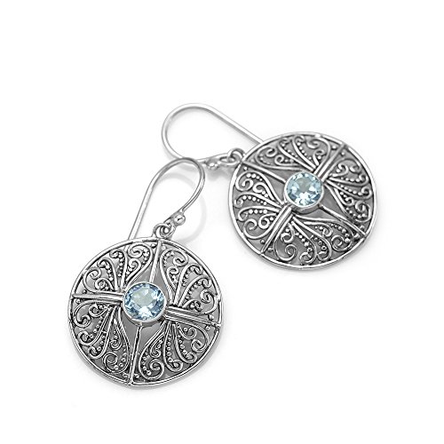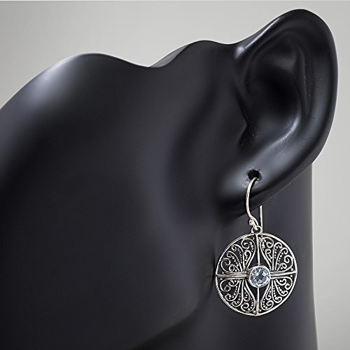 These beautiful Blue topaz Filigree earrings would be a wonderful addition to any of your daily wardrobe. Detailed work, made from Nickel free 925 Sterling Silver, genuine blue topaz gemstone. The included jewelry pouch makes it a perfect gift for your love ones in any special occasion. The icy-blue of topaz is well suited to December. Those born in the last month of the year gain a pleasant disposition and patient attitude from blue topaz. It is also a symbol of fidelity and love, and is said to cure many diseases.