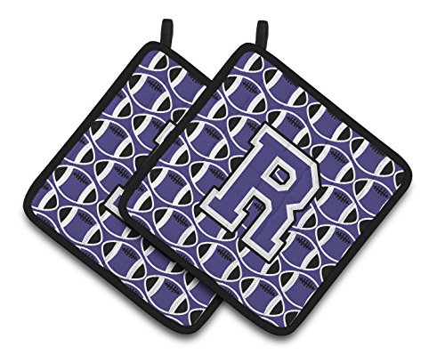 Caroline's Treasures CJ1068-RPTHD Letter R Football Pot Holders (1 Pair), 7.5" x 7.5", Purple/White