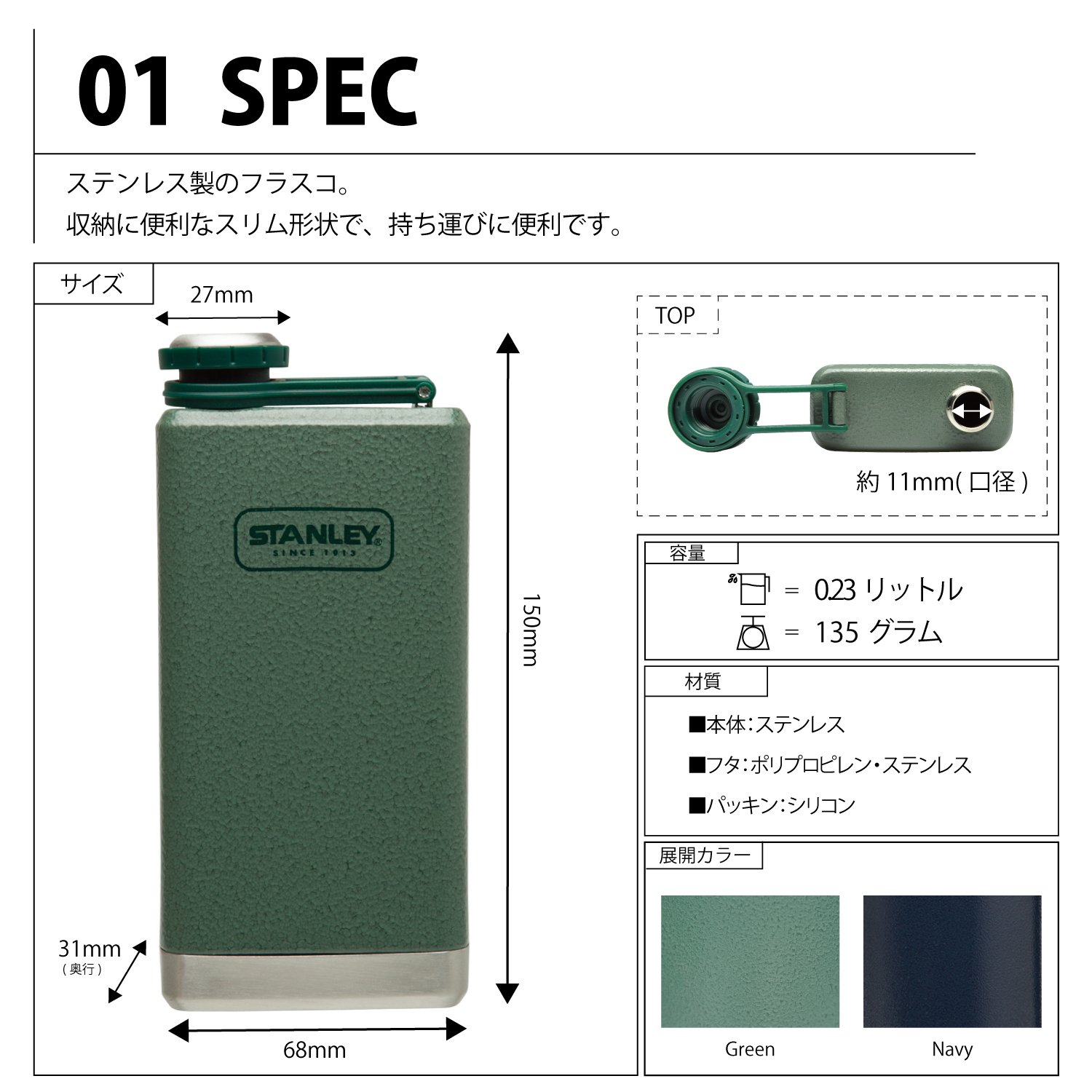 "Stanley SS flask 0.23 L skittle (Japanese genuine)" is a stainless steel flask bottle.