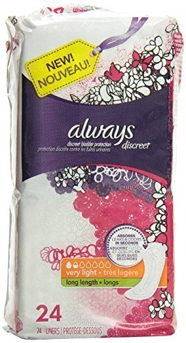 -. Title : Always Discreet Incontinence Liners, Very Light, Long Length, 24 Count (4 Pack)