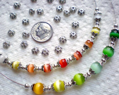 Beading Station 50-Piece Star Shaped Metal Bead Caps, 6mm, Antique Silver