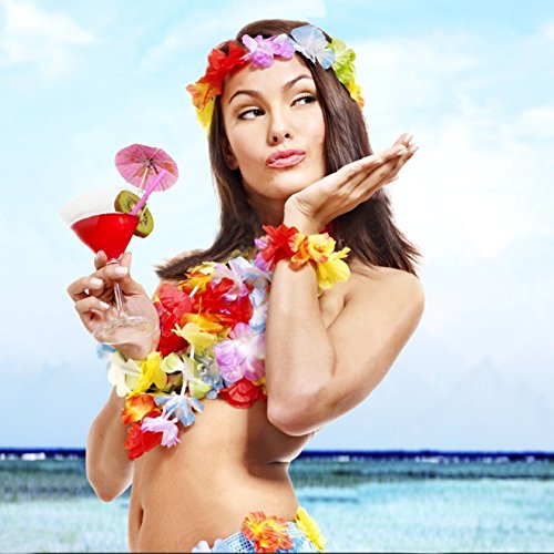 -. Title : 58 Pack Luau Party Supplies Decorations Set|36 Tropical Hawaiian Flower Leis Birthday Party Favors|2x10 Ft Long Tropical Multicolored Garland|20 Cocktail Drink Paper Parasol Umbrellas+FREE eBook