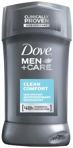 Dove Men+Care Clean Comfort Antiperspirant Deodorant is specifically designed for men with a clinically proven non-irritant formula. Experience total skin comfort with Dove Men+Care's unique combination of one of the most effective ingredients for 48-hour protection against odor and wetness plus ¼ moisturizer technology.
