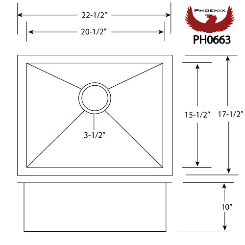 Phoenix 22-1/2" Undermount 16 Gauge Stainless Steel Square Kitchen Bar Sink Zero Radius