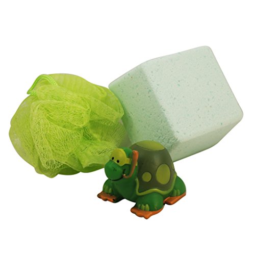 CHILDRENS GIFT SET === Deluxe Children's Bath Time Fun Boxed Gift Set includes full size bottles, jumbo mega bomb fizzing bath bomb, and green body pouf