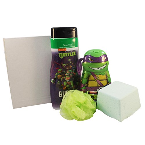 Giant Bath Bomb Ninja Turtles Bubble Bath Boxed Set Featuring Ninja Turtle Bubble Bath, Hair and Bodywash, Body Pouf, and Green Apple Mega Bomb...