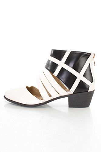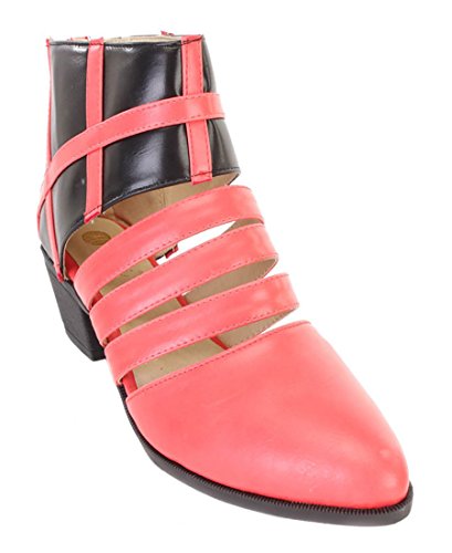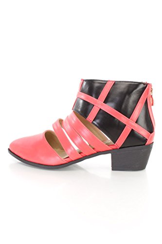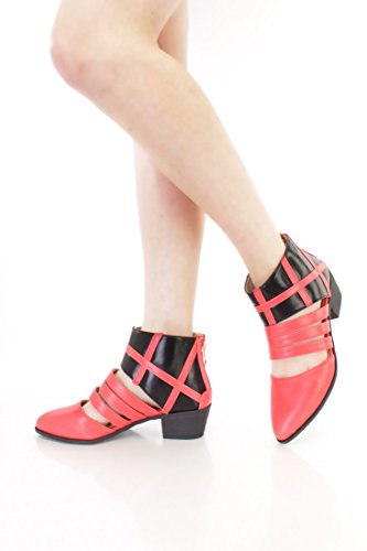 Binding : Apparel Product Description Looking for a trend setting, fashion forward women's bootie?! Well, look no further! This vegan friendly faux leather ankle boot features a fun strappy, cut-out design, vegan upper with padded insole and an approximate 2 inch heel. This rocker chic, colorful boot looks great when paired with women's skinny jeans, a basic women's top and a leather biker jacket. **Available in 3 different colors** 0