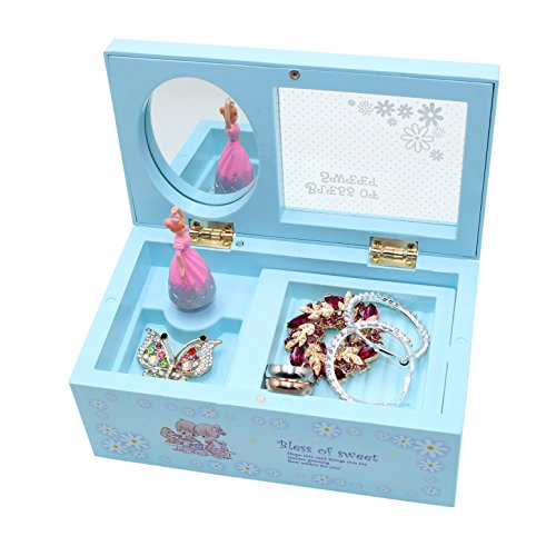 Fashion Dressing Box Music Drawer Jewelry Chest with Mirror (Blue)