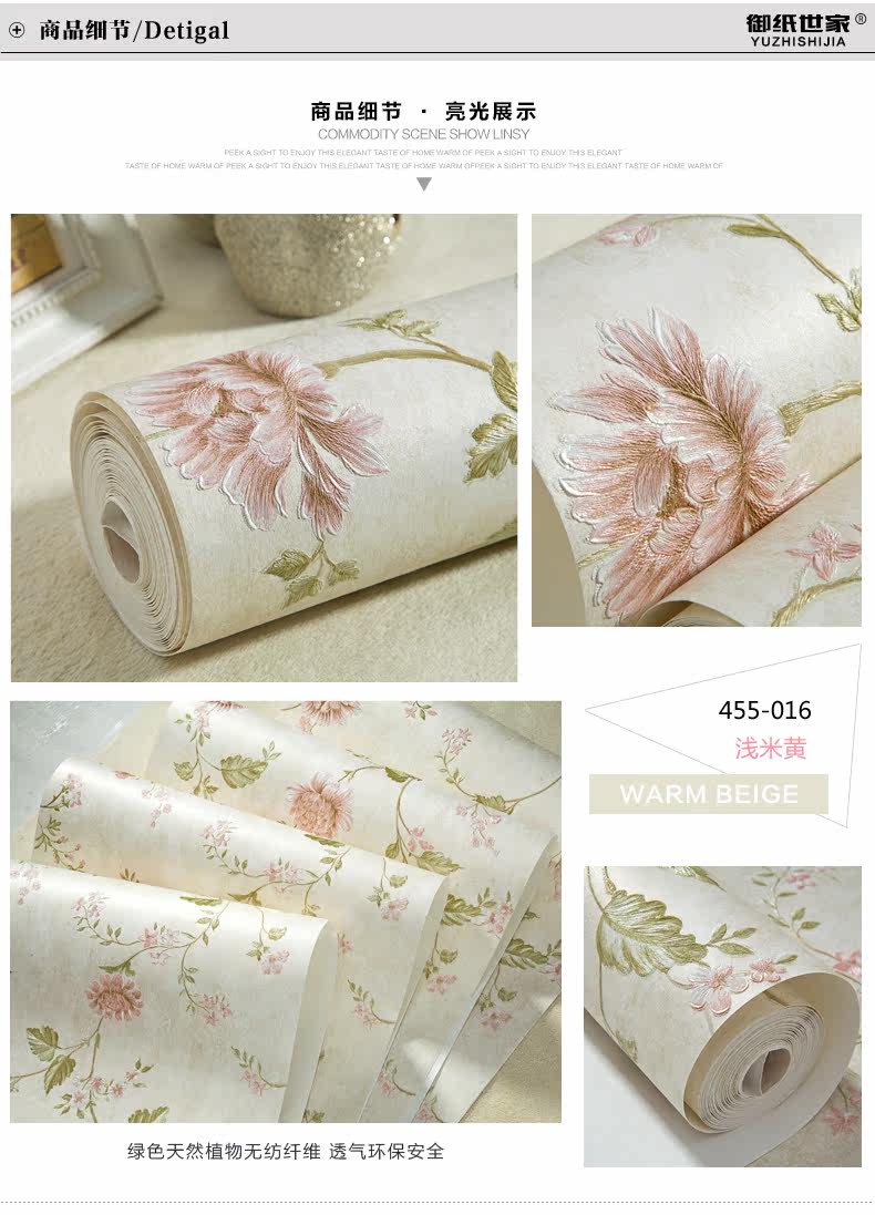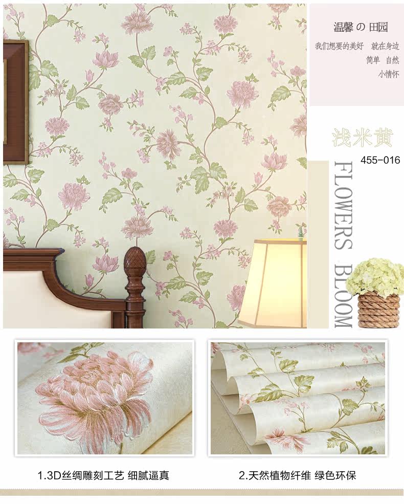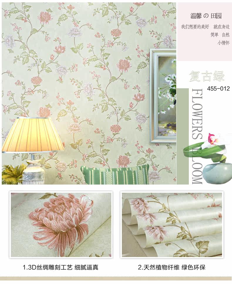 御纸世家 3d浮雕精压田园无纺布墙纸 卧室温馨客厅电视背景墙壁纸