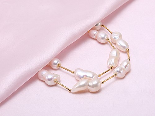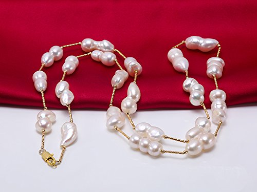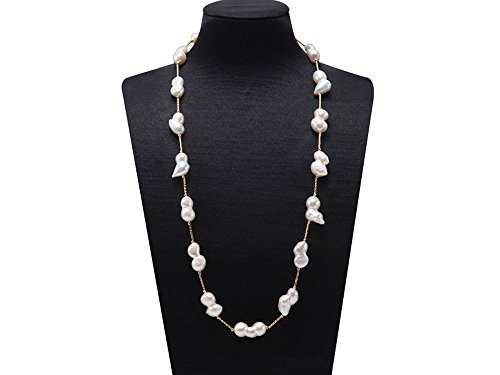 Description *Cost-effective 12×20-11.5×28mm white freshwater baroque pearl chain necklace.