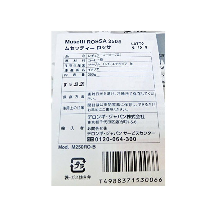 원본상품명: Musetti(ムセッティ) ロッサ コヒ豆 250g 袋