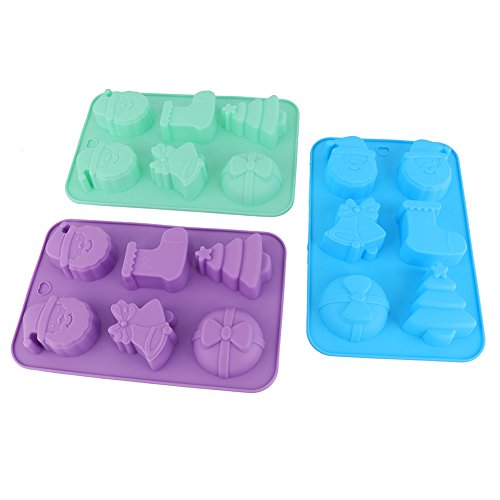 6MILES 6 Cavity 3D Christmas Theme Mold Fondant Cake Candy Pudding Chocolate Jelly Silicone DIY Mold Decoration Heat Resistant Funny Mould (Random color, Santa Claus)