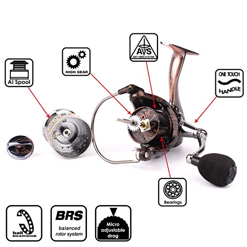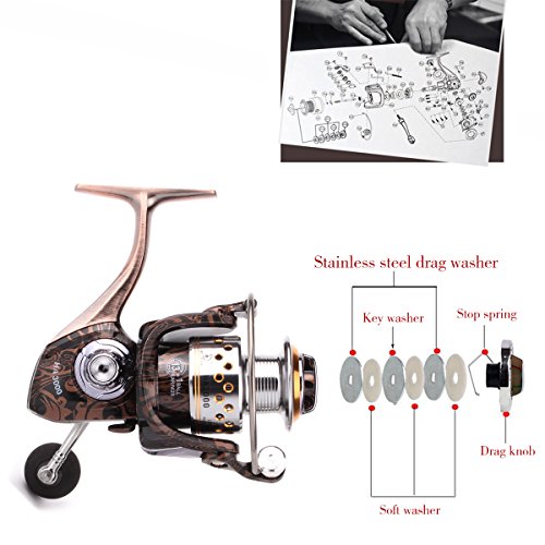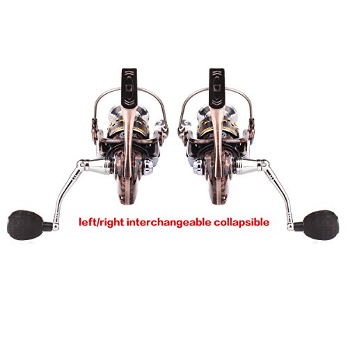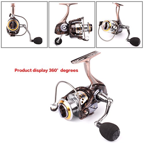 -. Feature : Metal Body:most part of body is made of Metal alloy,lightweight and durable. / Fully Adjustable Cast Control with Sound.S-curve Oscillation System for Very Good Line Winding .Aluminum Spool with High-tensile Gear. / The Fishing Reels Spinning Freshwater Saltwater with 5.5:1/4.7:1 Gear Ratio 13+1BB ,CNC Machine Cut Metal Collapsible Handle, Left/right Interchangeable . / 13+1BB no clearance bearings and one quick-set anti-reverse roller bearing use in spinning reels saltwater. the super bearing system, a solid reel shaft, when the line is smooth, feel is lightsome. Built-in precision bearing line spooler, full metal trio high speed saltwater fishing reels, discharge power outlet smooth degree of increase of 50% / Fit all saltwater fishing spinning reel and freshwater fishing reels, Spinning Reel & Spin Rods Combos than Baitcasting Fishing Reel & Casting Rods Combos use more flexible, suitable for position more widely, Created multiple actions for fishing Trout, Bass, Panfish, and even heavier rods for fishing larger fish such as Catfish or Salmon