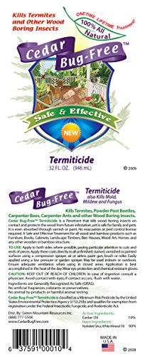 Termite Control - Cedar Bug-Free Termiticide. Natural Termite Treatment. Termite Spray - 32 oz