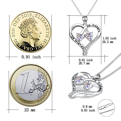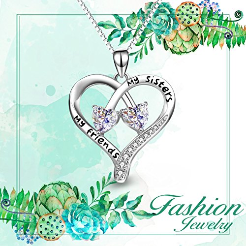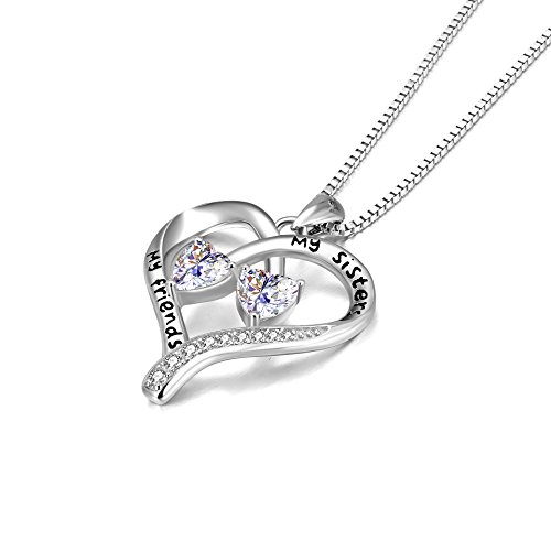 Engraved :"my sisters, my friends" Heart Pendant Necklace,Christmas Gift Idea for Sister