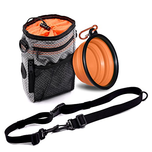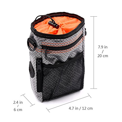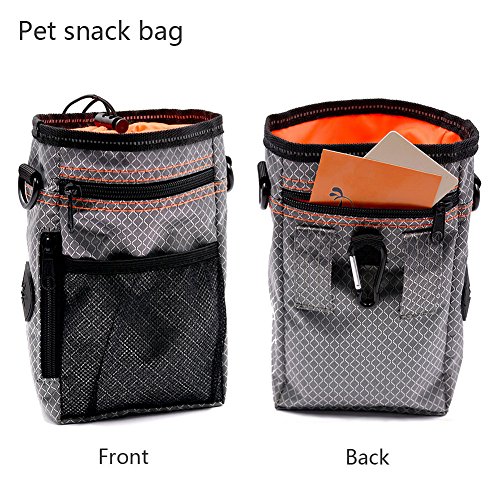 SECURE YOURBELONGINGS Cell phone, wallet, keys. We believe you should be truly hands-free! The easy-access, open compartment is the perfect size to hold your cell phone for a hands-free run or walk . best designed for treat and walking Snack bag: Product Size: 4.8 * 2.4 *8 In Product weight: gross weight 189g net weight 183g Packing size: 10.4 * 6.4 * 1.2 In ? Packing: pe self-styled pocket packaging Bowl size: diameter 5.2In, open the bowl.,2.2In ? Mountaineering buckle size: 1.92cm * 0.8In Folding bowl capacity: 380ml Weight: 65g