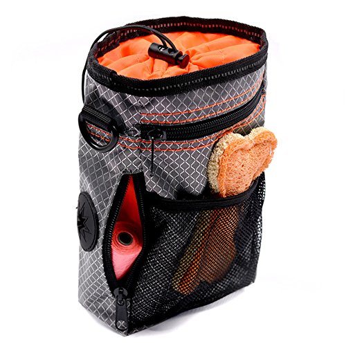 Insert food grade bag The dog treat pouch comes with a bone printing poop bag which can store in the built-in poo waste bags dispenser,and a collapsible ,you can put different food and no worry the food will mixed,more healthy and multi-purpose.