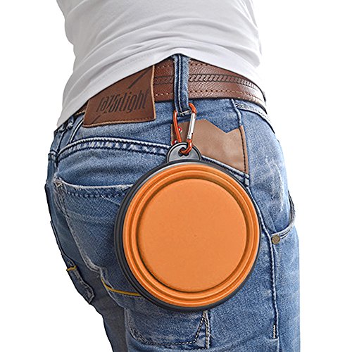 3 Mode Versatility Travel Dog Bowl with carabiner and a free Clicker.Size is large enough to store things for a long walk or traveling,training a new puppy or daily walk ,