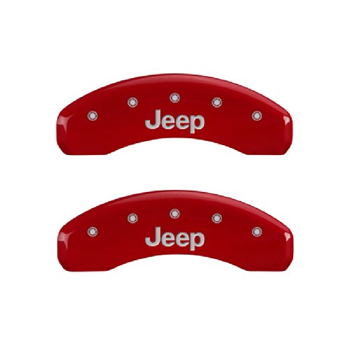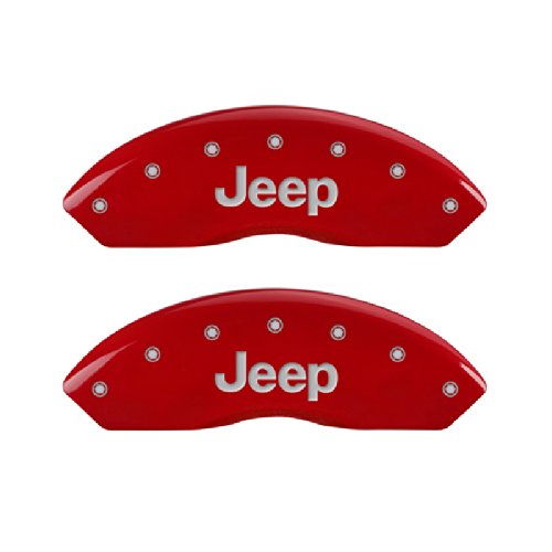 MGP Caliper Covers 42007SJEPRD 'JEEP' Engraved Caliper Cover with Red Powder Coat Finish and Silver Characters, (Set of 4)