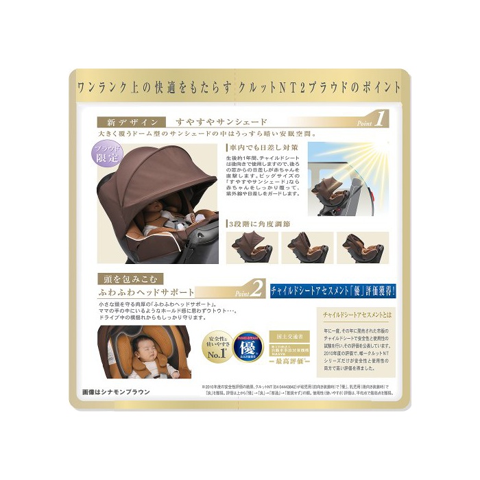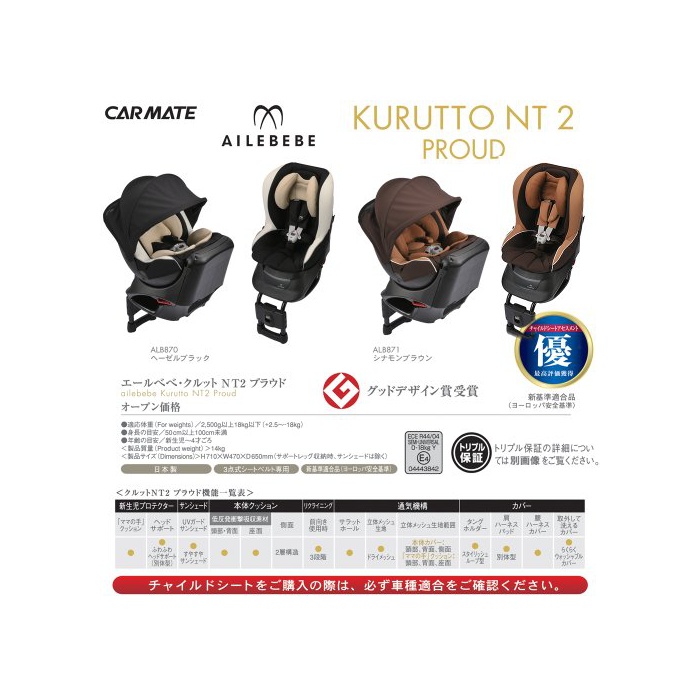 원본상품명: カ?メイト エ?ルベベ クルットNT2プラウド 新生?から4?用チャイルドシ?ト(サンシェ?ド付360度回?型) ヘ?ゼルブラック