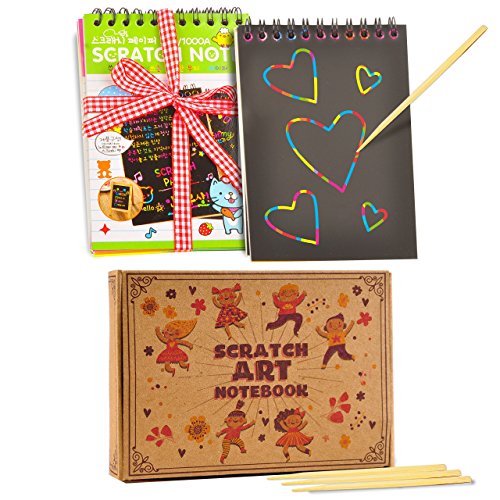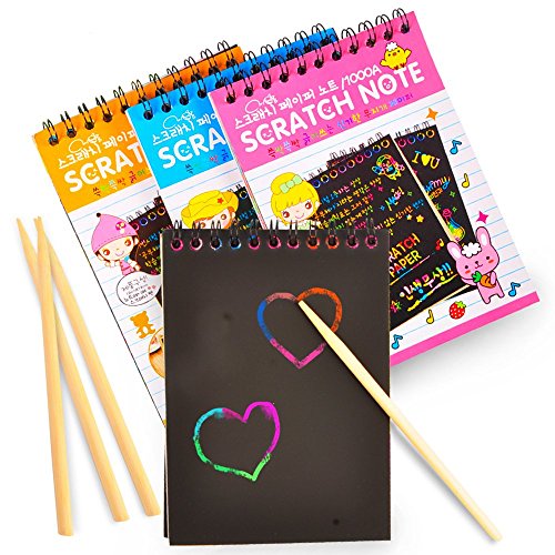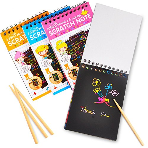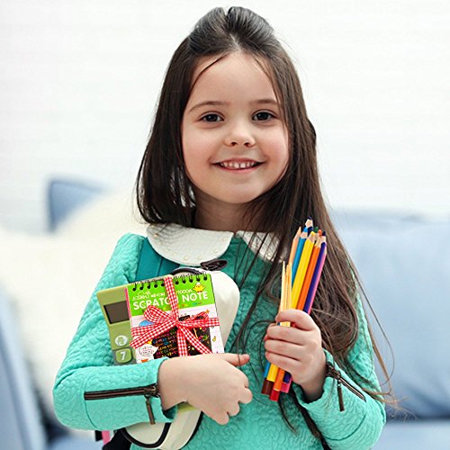 GREAT BUY. Each set includes four notepads with its own wooden stylus. All the notepads pages are covered with black matte coating. Eye-catching combinations of colors and patterns hidden underneath can be revealed by drawing! It’s a great option for a gift, Christmas stocking fillers, or a party favor!