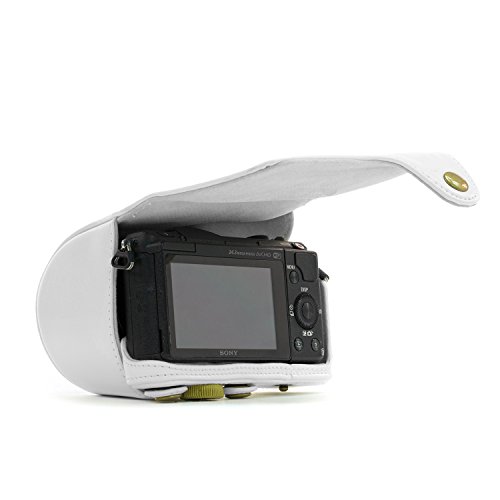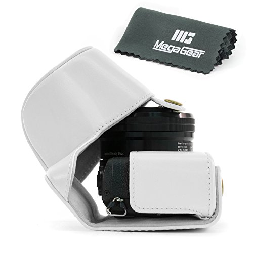 -. Title : MegaGear "Ever Ready" Protective White Leather Camera Case, Bag for Sony NEX-3N with Sony SELP1650, Sony A5000, Sony A5100 16-50mm Lens