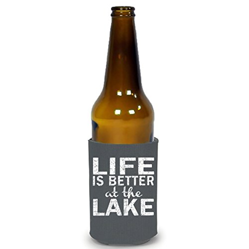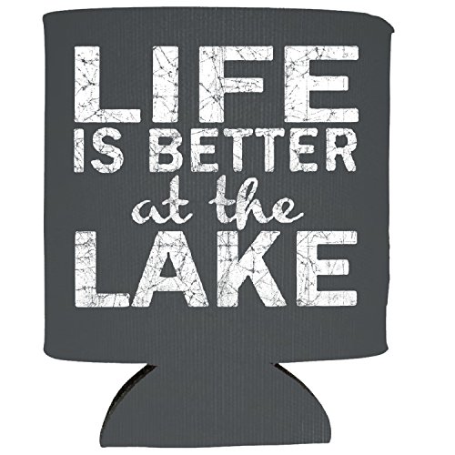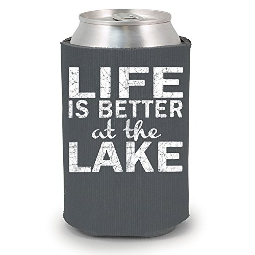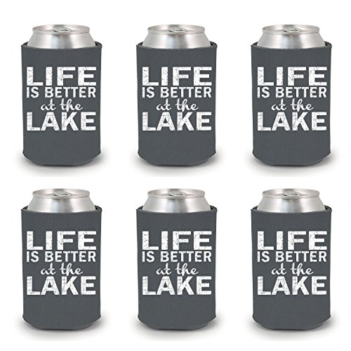 Shop4Ever Life is Better at the Lake Can Coolie Sayings Drink Coolers Coolies (6, Charcoal)