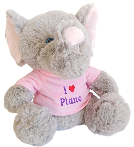 Piano Player Gift - 10” Plush Gray Elephant Embroidered with I “Heart” Piano with Pink Shirt