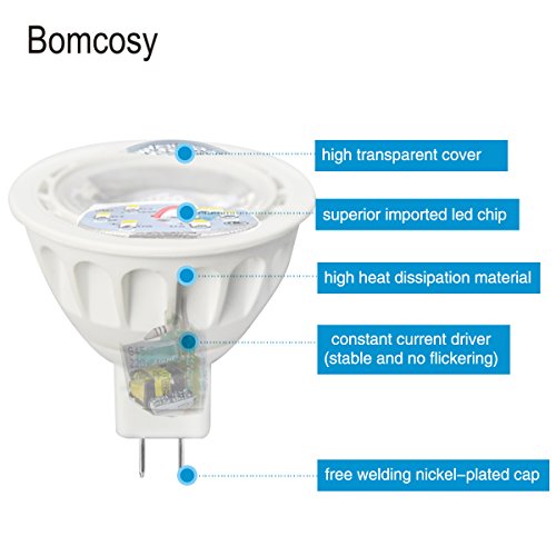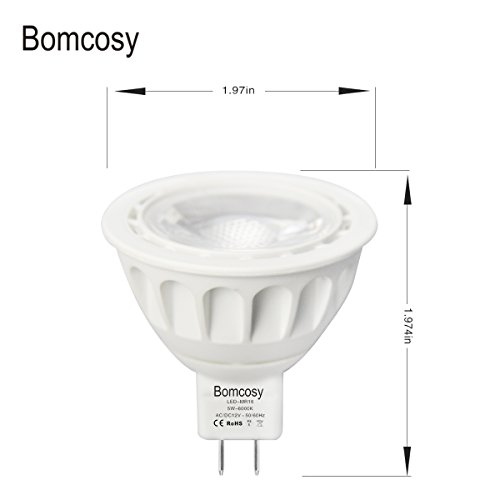 Bomcosy MR16 5W LED Light Bulbs, GU5.3 LED Spotlight bulbs, 12V Daylight White 6000K LED Blub, 50 Watt Equivalent, 425lm,35 Degree Beam Angle, Not Dimmable, Pack of 6 Units