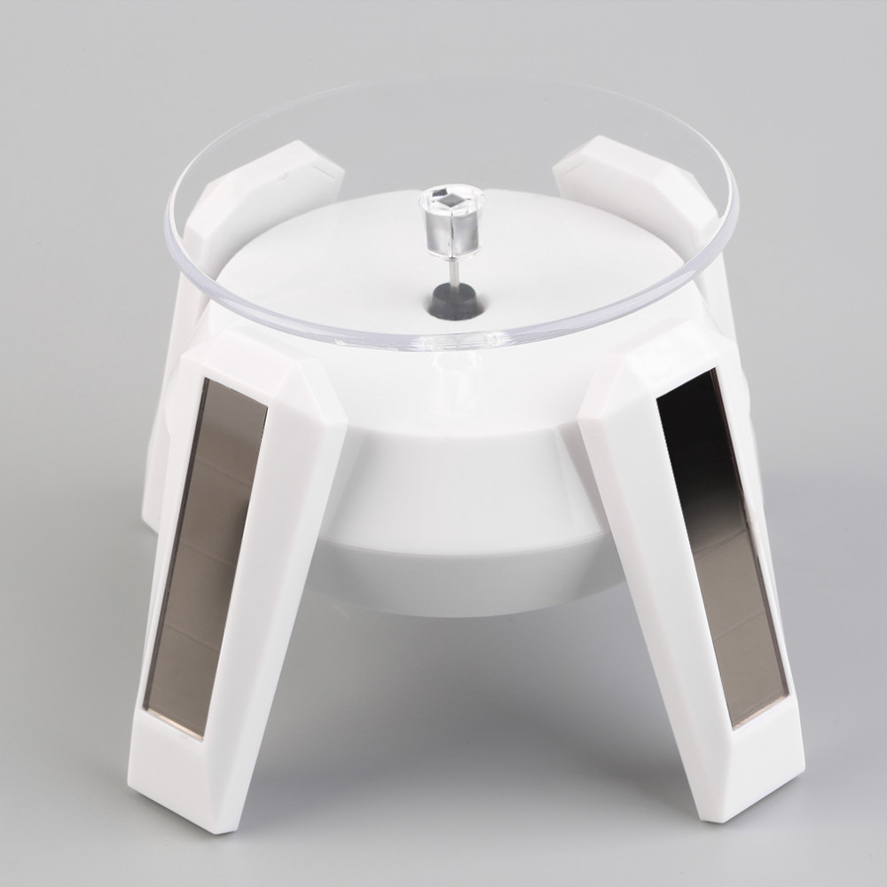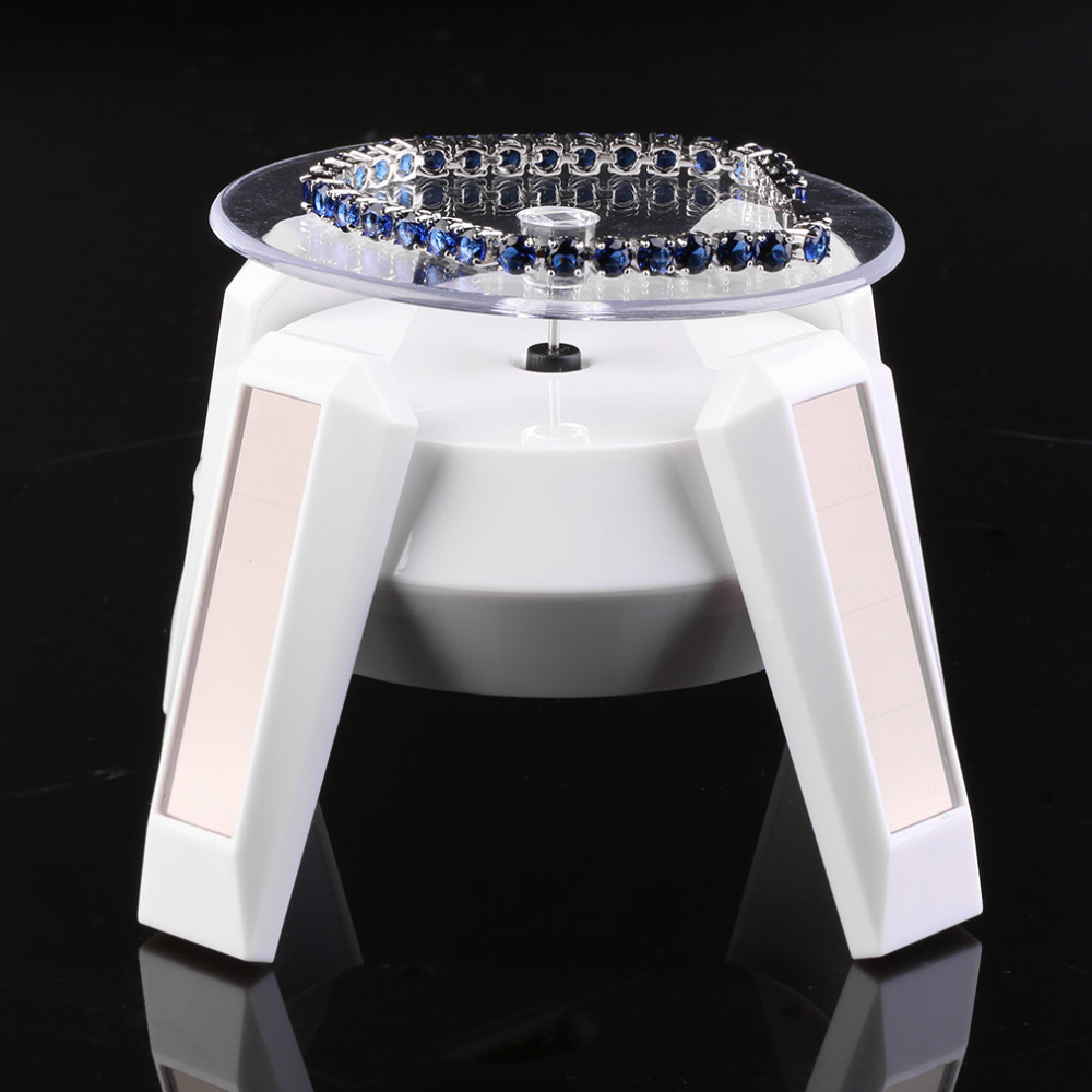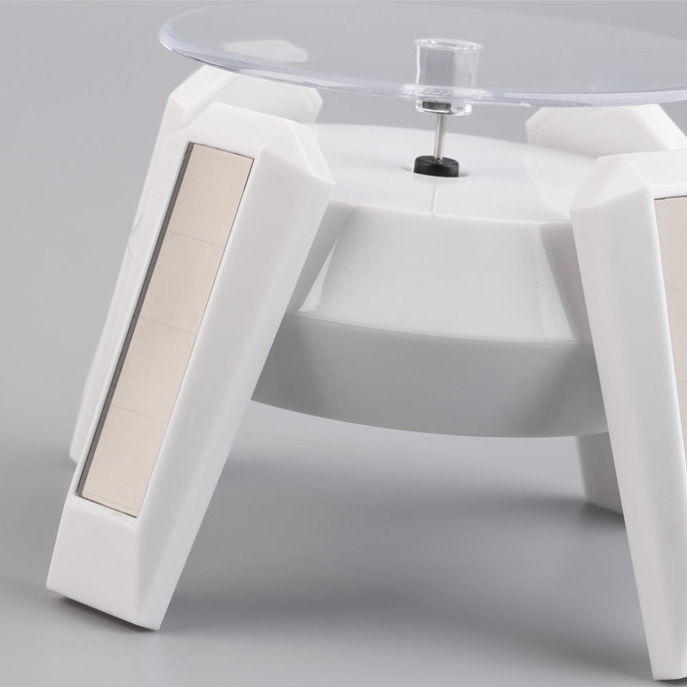 2016 Newest White Solar Powered 360 Rotating Jewelry Watch Cellphone Display Stand Turn Table useful