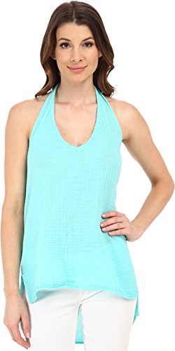 Scoop neckline. Self-tie halter at nape of neck. Slit at side. High-low hemline. 100% cotton. Machine wash cold, tumble dry low. Made in the U.S.A. and Imported.