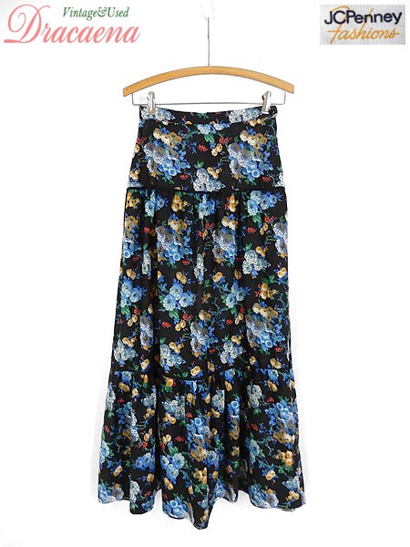 Ladies ブランドJCPenney カラー黒ベース メール便不可 コンディション★★★ 素材表記はありませんが、コットン・ポリエステルかと思われます。 表記サイズ7/8 実寸サイズ 着丈 97 cm ウエスト 25 インチ( 63 cm) ※ウエスト・ヒップ以外は平置き採寸