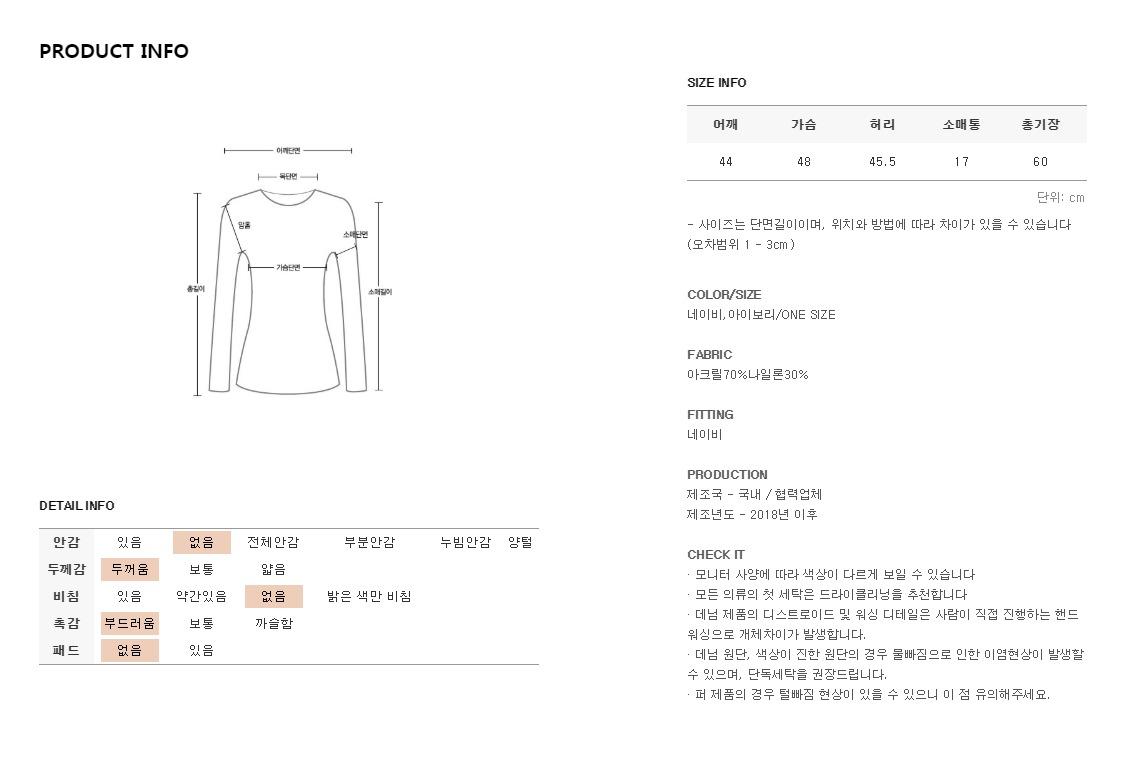 무난한 컬러구성으로 어떤 이너와 함께 코디하셔도 귀엽고 모던해요