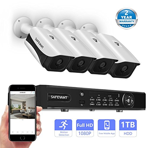 Safevant 4 Channel 1080P AHD Home Security Cameras System W/ 4x HD 2.0MP (1920TVL) Waterproof Night Vision Indoor/Outdoor CCTV Surveillance Camera,Pre-installed 1TB HDD,Free APP,Plug&Play