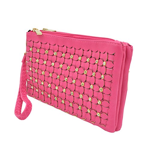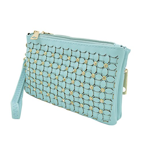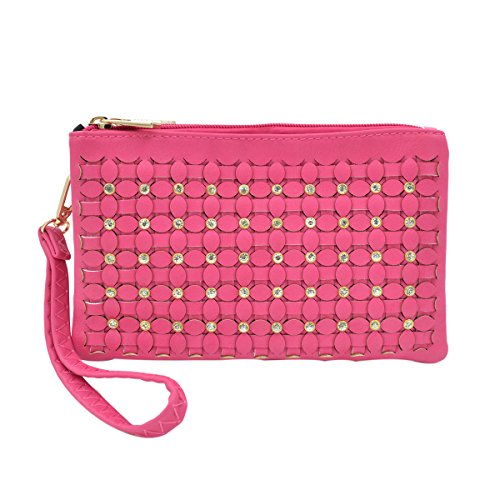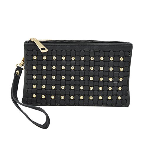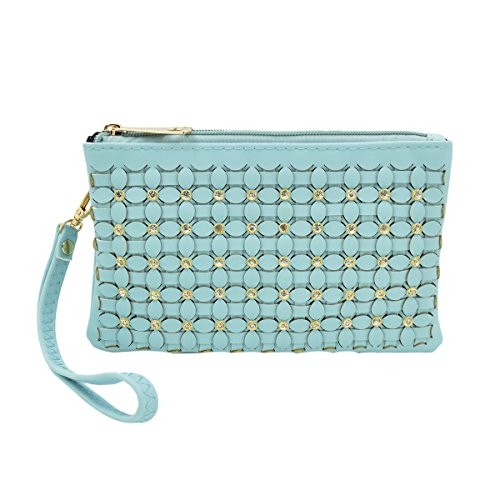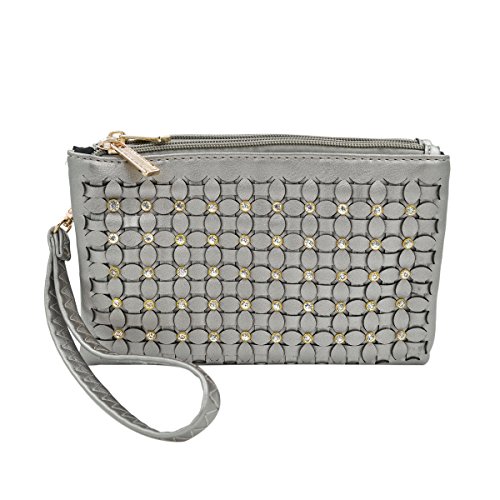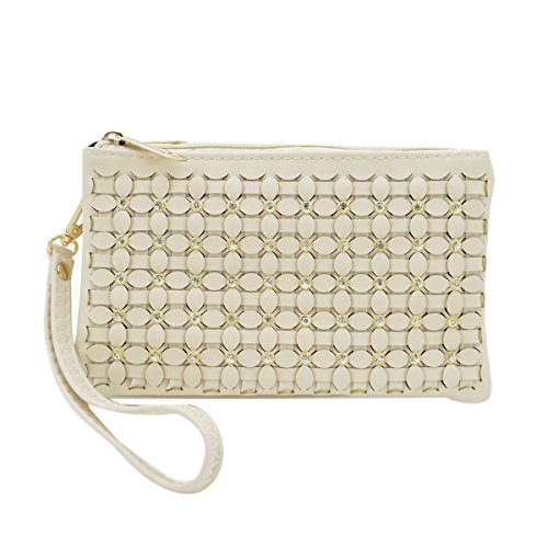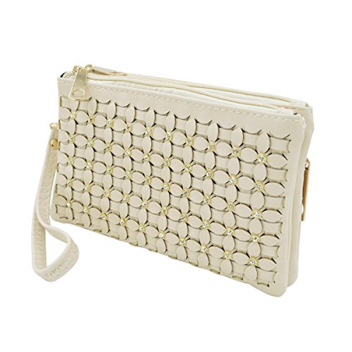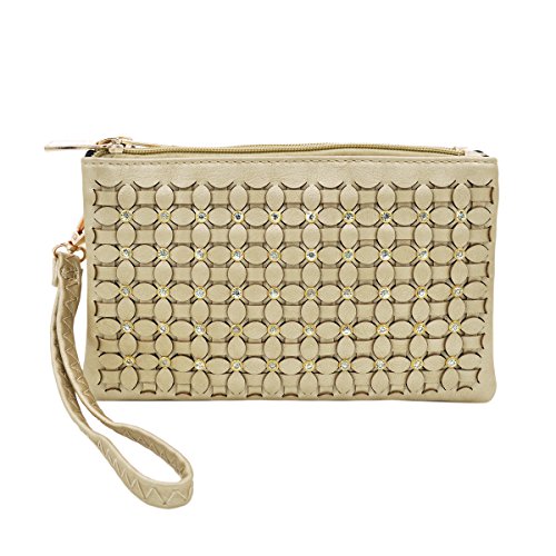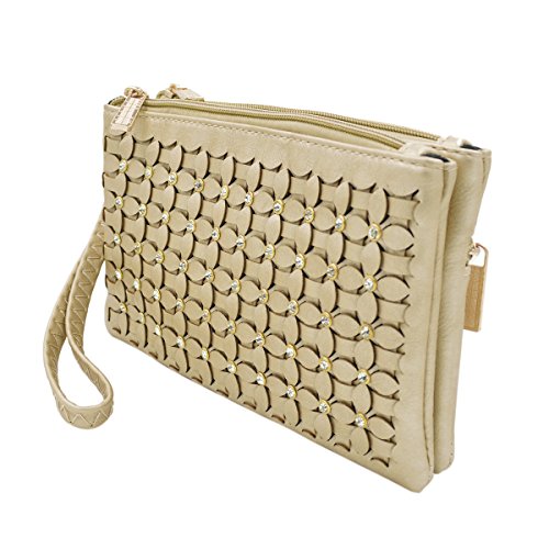Studio : TrendsBlue Publisher : TrendsBlue Product Description This high quality small wristlet crossbody bag is unique, functional and stylish, features great storage capacity and usability. Durable soft PU leather with pretty braided floral patterns and sparkling rhinestones, both elegant and chic. Fully lined with double top zip closure. 2 zipped main compartments, 1 middle pocket, and 1 zipped pocket on the back. Come with 2 removable straps: 1 wristlet strap and 1 adjustable hideaway shoulder strap. Gold tone hardware. Perfect for both day and night use, as a clutch handbag, a wristlet, or a small crossbody bag. Stunning and versatile. Roomy and functional. Elegant design and luxury leather feel. Casual luxury at its best. The size is 8" (L) x 5" (H) x 2" (W). 0