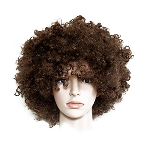 - Brown,curly afro wig with a mesh cap inside that stretches to fit most adults and kids,Big and fluffy brown afro wig for men and women, 70's style afro costume wig.