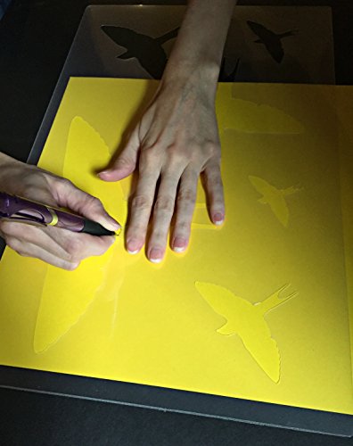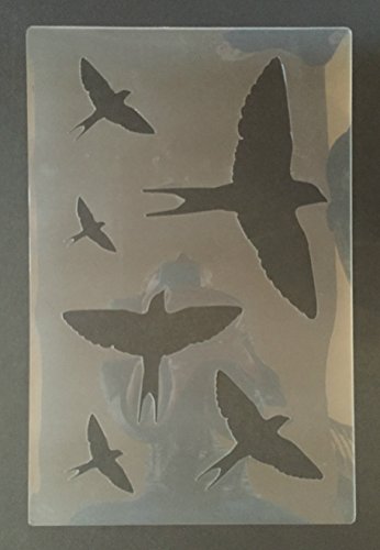 -. Binding : Kitchen -. Brand : Living Lullaby Designs -. Color : Clear -. EAN : 0636391898218 -. Feature : REUSEABLE STENCIL- made of durable clear plastic, easy to use and clean / ECONIMAL ALTERNATIVE TO WALL DECALS- paint or cut out as many birds as you want / CUSTOM DESIGNED- by Living Lullaby Designs for ideal shapes and sizes / SET OF SIX BIRDS - perfect for adding variety and interest to any room / COMPLETE INSTRUCTIONS- http://www.livinglullabydesigns.com/stencils/bird-stencils/ -. Label : Living Lullaby Designs -. Manufacturer : Living Lullaby Designs -. Model : BIRDSTENCIL -. MPN : BIRDSTENCIL -. PackageQuantity : 1 -. PartNumber : BIRDSTENCIL -. ProductGroup : Home -. ProductTypeName : HOME -. Publisher : Living Lullaby Designs -. Size : 11 1/2" x 17 1/2" -. Studio : Living Lullaby Designs -. Title : Flying Bird Stencils - Collection of 6 - Sizes Range From 9 ½" - 2 3/8" - 10 mm Clear Plastic Sheeting - for Use As Wall Stencil or for Paper Cut-outs -. UPC : 636391898218