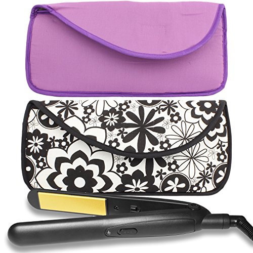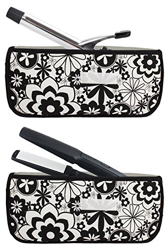 Portable Hot Flat Iron Hair Styling Tools Travel Case by bogo Brands (Black w/White Flowers)