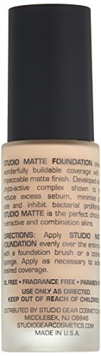 Studio Gear Cosmetics Matte Foundation delivers buildable coverage with an impeccable matte finish. Key Benefits: Long Wear, 100% Oil Free, Fragrance Free, Paraben Free. Ideal Choice For Normal To Oily Skin Types To Help Reduce Excess Oils And Minimize Pore Size.Feature