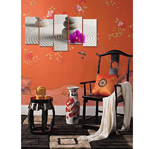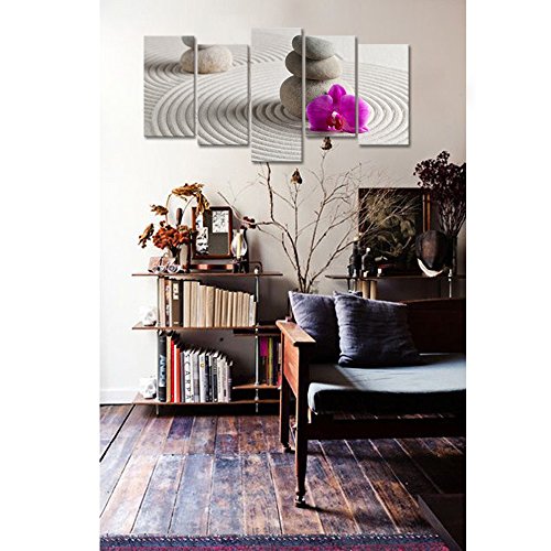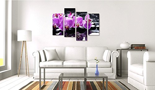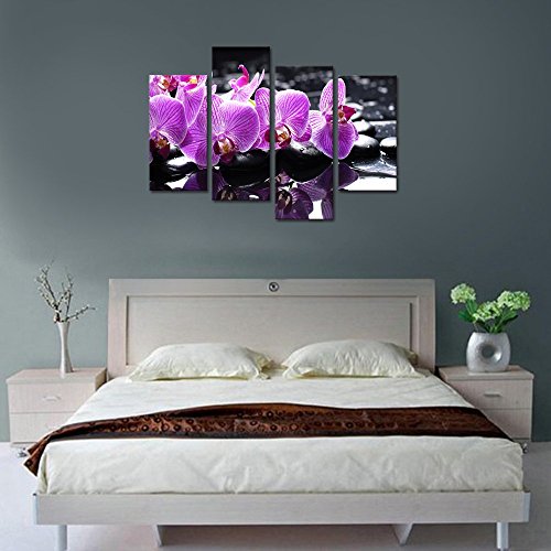 -. Title : Purple Flowers Canvas Wall Art,Elegant Orchid Zen Stone Canvas P.R.Ints for Wall Decor,Zen Artwork Gift,Spa Stone Canvas Painting P.R.Ints,Large Size Wall Art Stretched and Ready To Hang On
