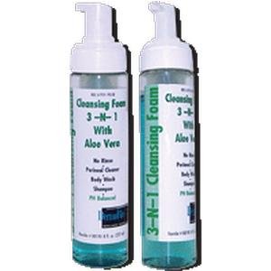 Studio : Alimed Publisher : Alimed Binding : Health and Beauty Product Description 3-n-1 Cleansing Foam 7-3/4Oz Bottle, No-rinse, Latex-free no-rinse, easy to use 3-N-1 Cleansing Foam is the one product that does it all. 3-N-1 Cleansing Foam contains Aloe Vera, is pH balanced and is great for bed baths, ventilator patients, bed confined and obese patients. Use as a perineal cleanser, body wash or shampoo. Perfect for use in Hospice Home Health. 0