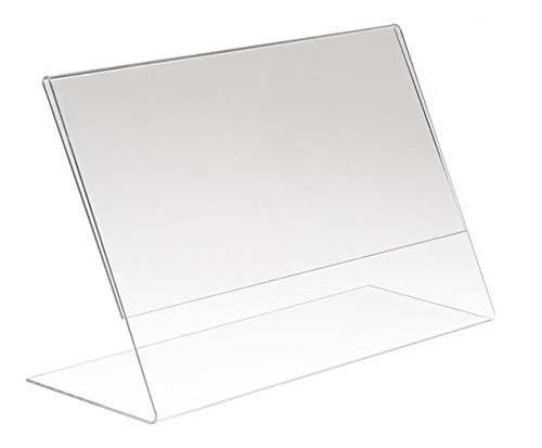 - SIMPLE AND EASY TO USE. Each slanted sign holder conveniently loads from the side or top and can be used to display one item or two prints back-to-back to create a double-sided display. When necessary, you can use a damp cloth and easily wipe clean.