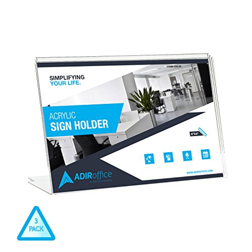 - VARIETY OF PACKAGE SIZES. To cater to each user's display needs, this Adir Office Sign Holder is available in five different quantity packs – 3, 6, 12, 24 and 36 count. Each holder has an opening for easy paper insertion on the top or side, and is durably made to provide long-lasting strength and use throughout the years.
