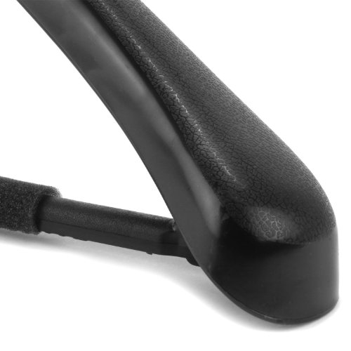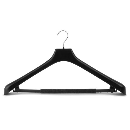 -. Feature : Pack of 5 extra wide 50cm black plastic clothes hangers with trouser bar- 5cm wide shoulder support. / Brilliant all-purpose pants bar hanger for larger clothes with foam protector sleeve. / Ideal for suits, jackets, pants, coats, skirts, uniforms etc. / Thicker arm profile gives jackets and coats support. Wide collar section makes these hangers equally suited to shirts & t-shirts. / Durable, strong, smooth plastic with swivel polished metal hook. Size: 19.7 inches wide - ideal for plus size garments.