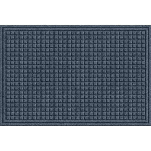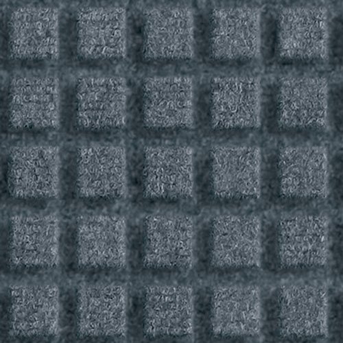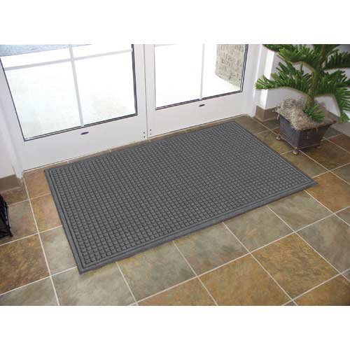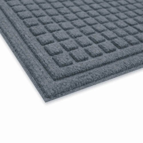 Apache Ecomat Squares mat, recycled rubber, tread prevents shifting. Like tires to the road, matting stays in place on carpet and hard floor surfaces alike. Crush-resistant, bi-level carpet matting brings wet, dirty floors to a screeching halt. Dual-fiber carpet dries quickly and resists staining and fading for durability. Double border traps dirt and moisture on the mat. Molded rubber base provides heft and durability. With each 15 square feet of squares matting made, one scrap tire and thirteen plastic bottles are saved from entering landfills.