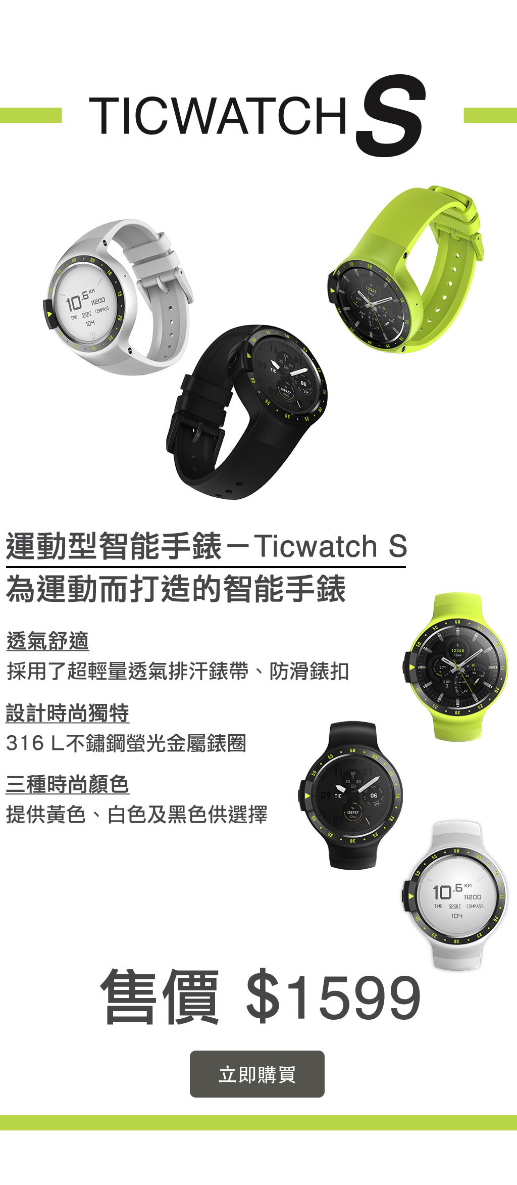 Ticwatch E(Express)和S(Sport)是款擁有極高CP值,而且結合了可穿戴式的最新軟、硬件技術的智能手錶。首先,兩款都擁有直觀式的UI,使用家可體驗到Android Wear的生態系統,包括可監察自己的生活、運動、睡眠等的健康數據,以及串流音樂等功能。而Ticwatch E和S均已內置了母公司Mobvoi所開發的健康Apps,以增強用家的體驗