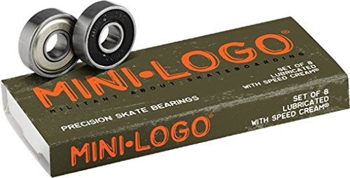 Studio : Skate One Corp. Publisher : Skate One Corp. Binding : Sports Product Description Mini Logo Bearings are Skate Rated, precision 608 bearings made to Skate One specifications. They have a removable rubber shield on one side, a removable metal shield on the other, a high speed molded ball retainer, precision ground and super-finished hardened chromium steel races and balls and come pre-lubricated with Speed Cream. Twice the performance and half the price you would expect. 0