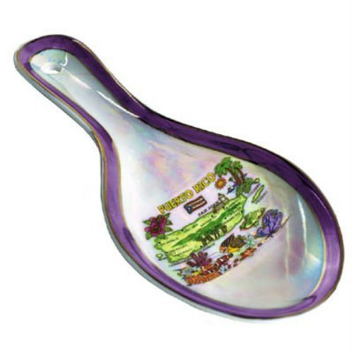 Puerto Rico Map Pearl Souvenir Collectible Spoon Rest agc