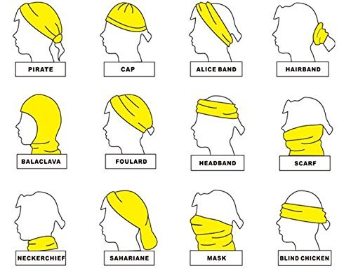 - Products could be worn like as: Head Wrap, Headband, Mask, Hairband, Neckband, Neckwarmer, Armband, Waistband, Bandana, Scarf, Handkerchief, Hat& more(12-in-1).
