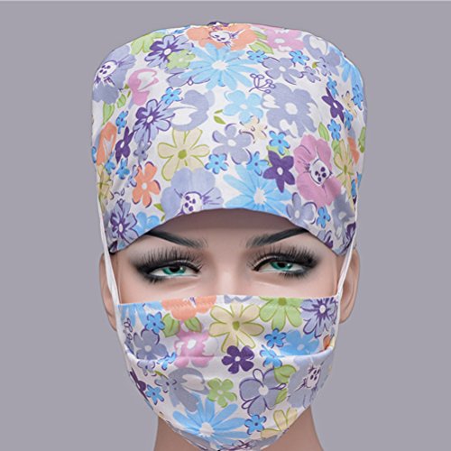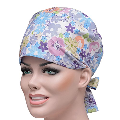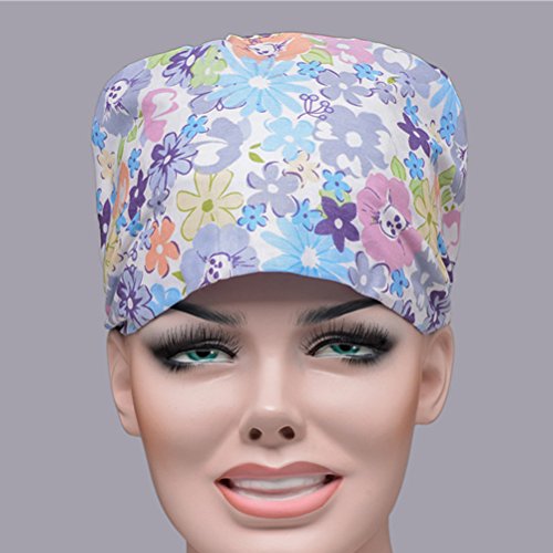 Package Including 1 * Unisex Surgical Scrub Cap Flower Printed Adjustable Tie Doctor Nurse Cap Surgery Hat 0